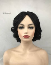 黑色中分短卷发白雪公主造型 小仙女水波纹假发套cos Lolita假发